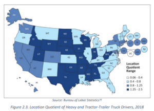 Location – Long-haul trucking jobs are available to drivers almost anywhere in the country. Arkansas, Nebraska, North Dakota, Iowa, and Wyoming have the highest concentration of trucking jobs. Heavy and tractor-trailer truck drivers are more concentrated in the Heartland and Southern regions.